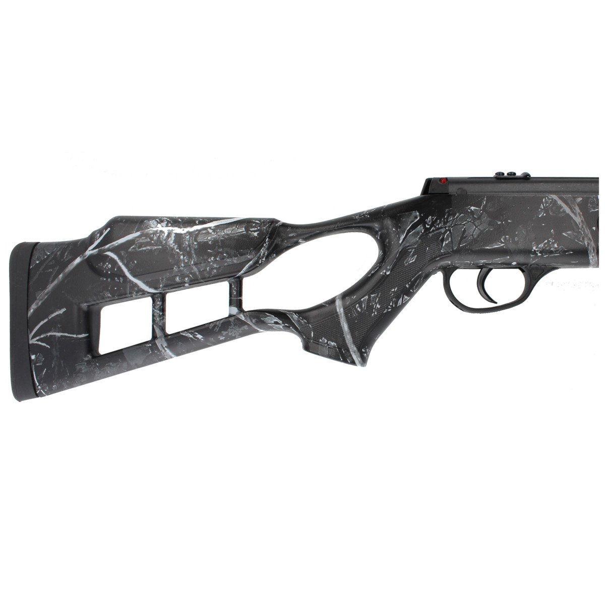 Stock – ergonomic thumbhole design suitable for both right- and left-handed users. Made from durable polymer in an exclusive Moonshine Camouflage, it features checkering on the grip and the midsection of the forearm for a secure hold. The Monte Carlo-style cheek pad aids in proper alignment for shooting and aiming. The stock is finished with a ventilated rubber butt pad that absorbs recoil energy after each shot and provides a stable point of contact.