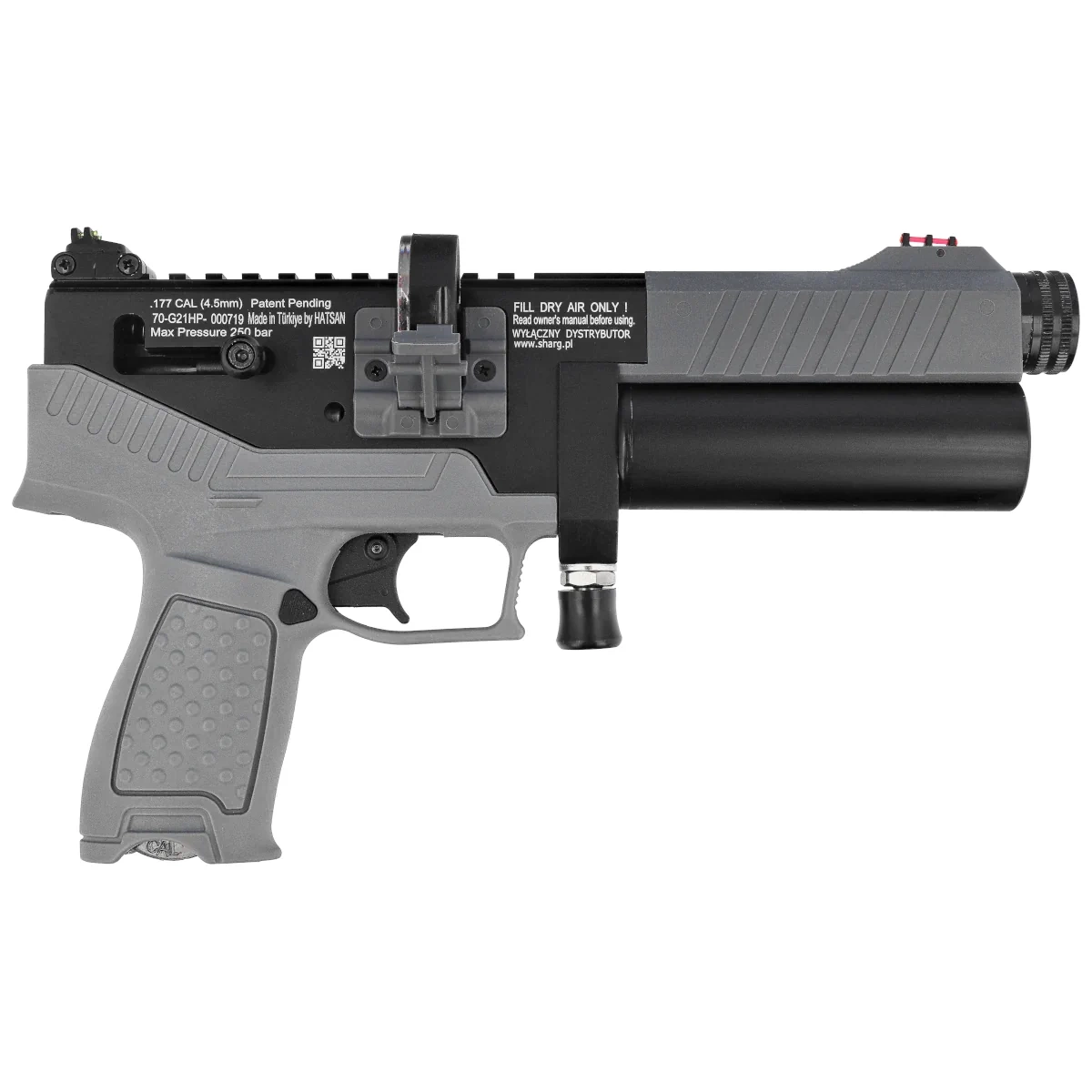 Velox Grey is the most advanced semi-auto PCP pistol made by Hatsan. Equipped with advanced technologies, it raises the shooting experience to the next level. Its detachable 55 cc air tank and an additional cartridge included ensure long-lasting use. One of the standout features of the Velox is its enhanced trigger system, delivering incredibly precise, smooth, and soft firing with each shot.
