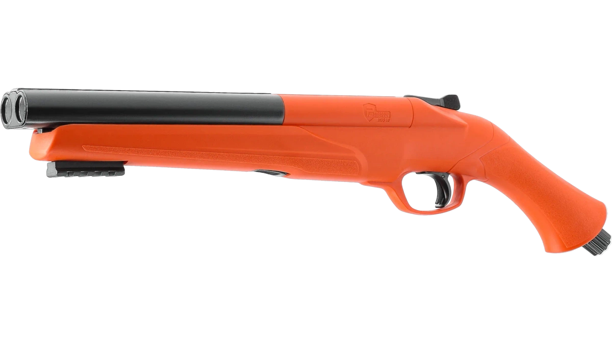 Effective Protection in a Compact Form. The Umarex P2P HDS 68 is a modern, double-barreled RAM shotgun designed to fire .68 caliber projectiles with a kinetic energy of 16 J. These specifications ensure effective threat neutralization, even against heavily clothed attackers. This model is available without requiring a permit, making it an ideal self-defense tool for home protection.