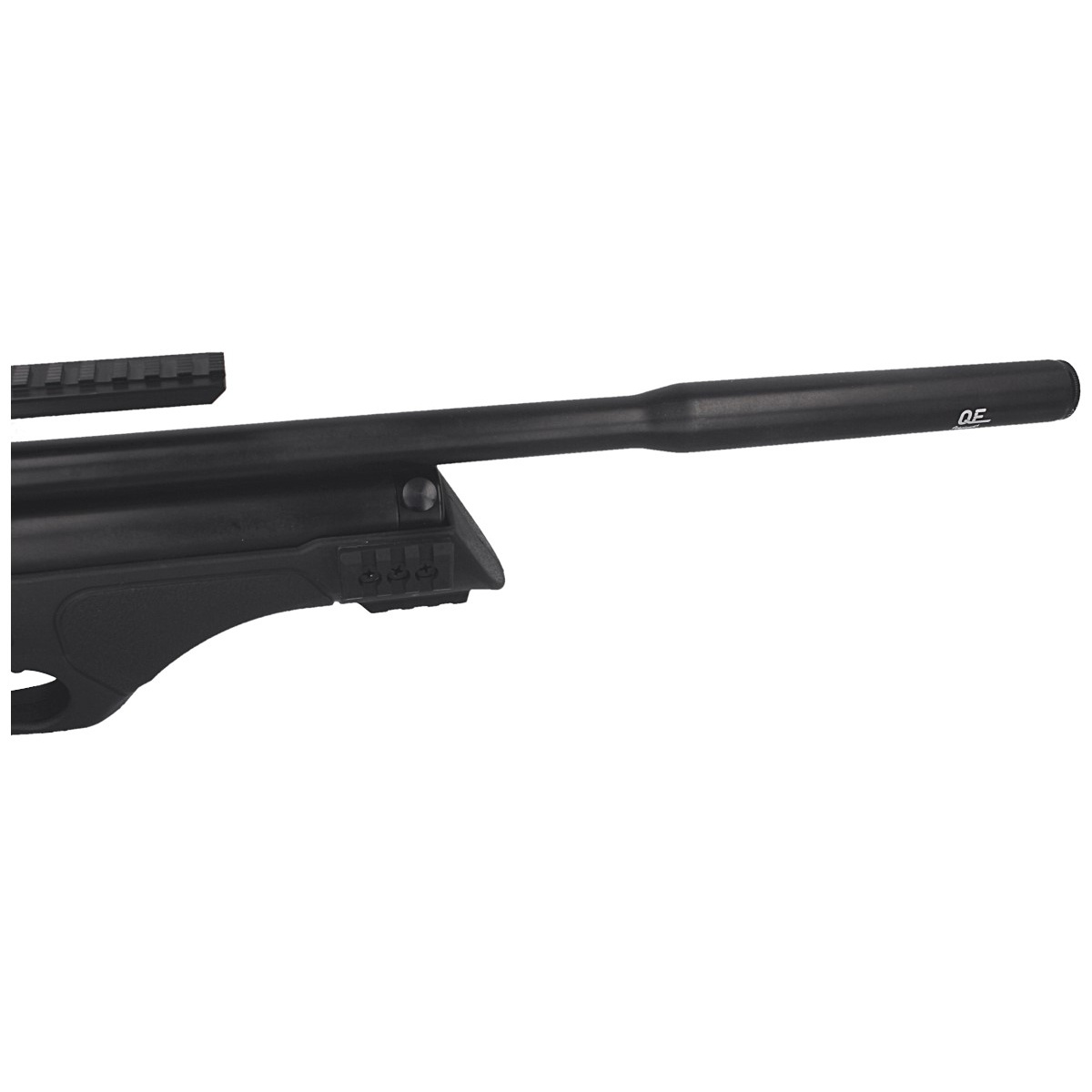 Lufa - precyzyjna gwintowana lufa Hatsan Arms o długości 17.7" (450 mm), Hatsan QE (QuietEnergy) zakończona integralnym tłumikiem dźwięku redukującym o -50% odgłos wystrzału. Takie rozwiązanie zachowuje maksymalną energię wylotową śrucin, co jest utrudnione w wypadku opcjonalnego tłumika. Konstruktorzy z firmy Hatsan zadbali o rozwiązanie tego problemu, co dodatkowo poprawiło wyważenie wiatrówki. Zwężenie u wylotu lufy zwane czokiem poprawia skupienie. Jakość wykonania lufy jest jednym z najważniejszych elementów każdej broni / wiatrówki. Wpływa na celność karabinu, zwłaszcza podczas strzelania na dużych dystansach.