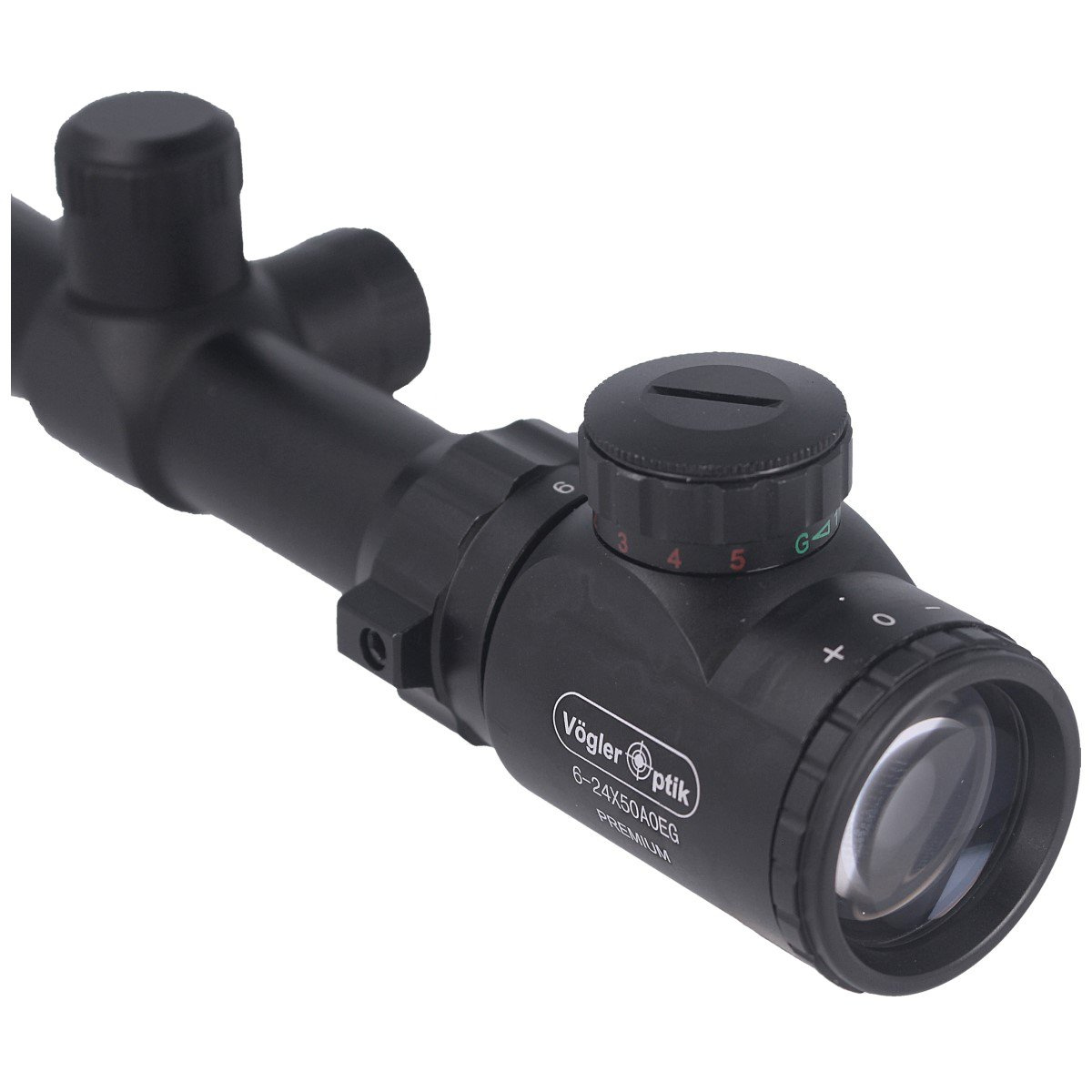 - Celownik optyczny Vogler Optik z serii Premium z siatką R14 i montażem 11 mm w zestawie. Antyrefleksyjne powłoki szklanych soczewek i tubus wypełniony azotem gwarantują klarowny obraz. Powiększenie 6-24x, jasny obiektyw 50 mm. Luneta dla wymagających
