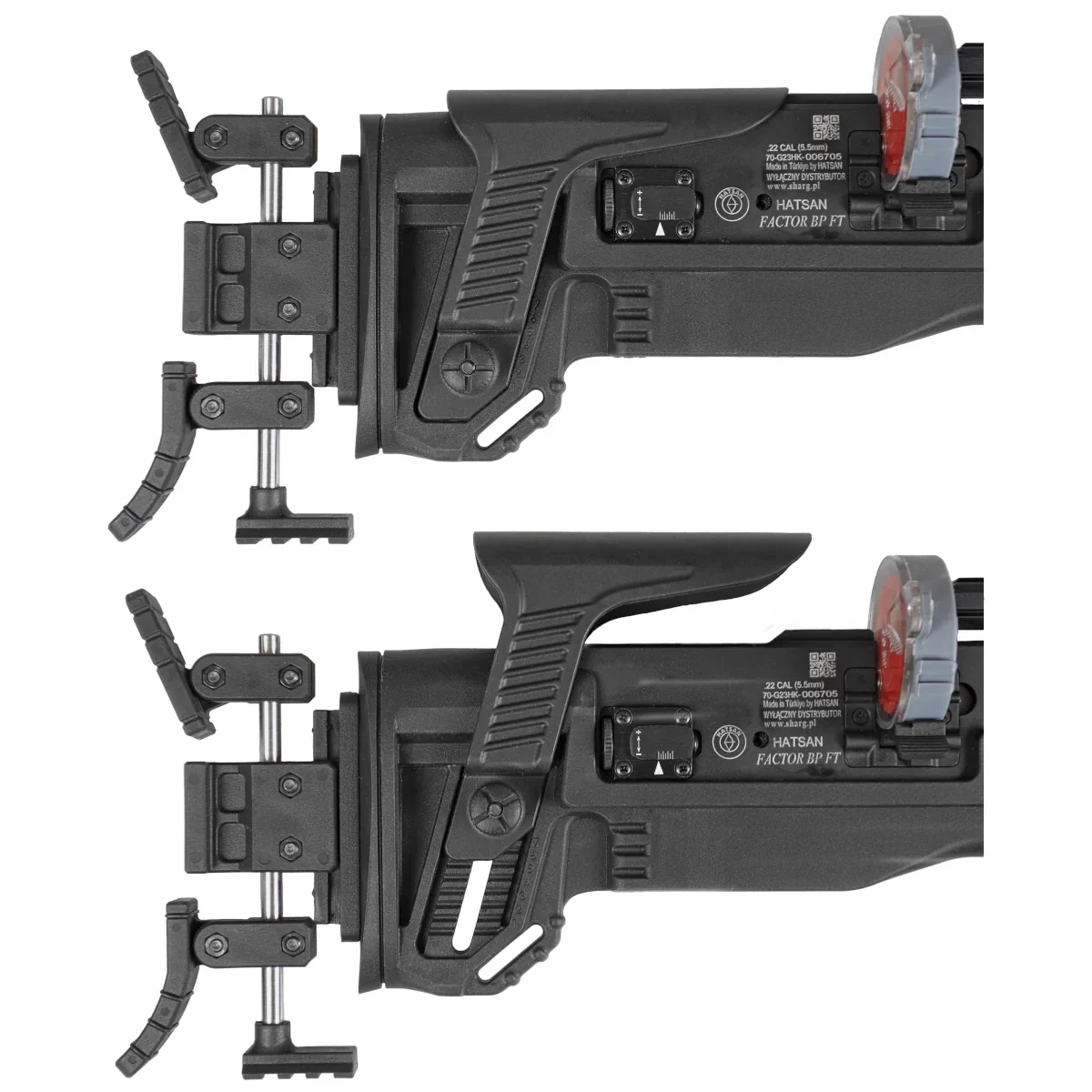 - Factor FT karabin PCP od Hatsan. Wyposażony w dźwignię napinania Side Lever, regulator mocy strzału, pokrętło regulacji mechanizmu spustowego, lufę ze zintegrowanym tłumikiem dźwięku QE. Dostępny w kalibrach .177 (4.5 mm), .22 (5.5 mm), .25 (6.35 mm)