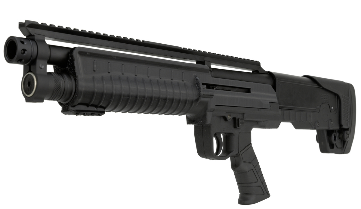 Gumowany chwyt pistoletowy zapewnia pewne trzymanie. Strzelba wyposażona jest w przedłużoną szynę picatinny 22 mm do zamontowania celownika optycznego.