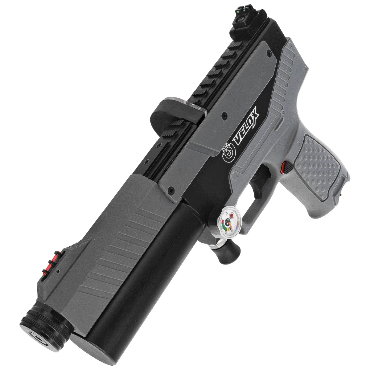 Velox Grey - to najnowocześniejszy półautomatyczny pistolet PCP firmy Hatsan. Dzięki zaawansowanym technologiom wynosi doświadczenie strzeleckie na wyższy poziom. Odkręcany  zbiornik powietrza 55 cc oraz dodatkowy kartusz w zestawie zapewniają długotrwałe użytkowanie. Jedną z najbardziej wyróżniających się cech Veloxa jest ulepszony system spustowy, który przy każdym strzale zapewnia niezwykle precyzyjne, płynne i delikatne oddawanie strzału.