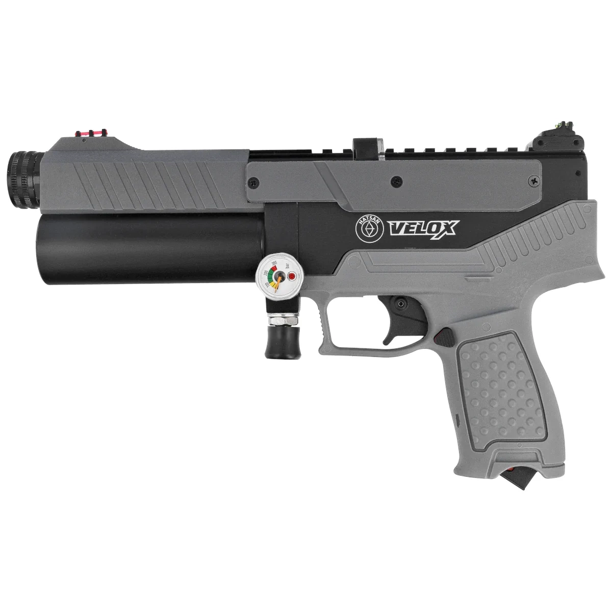- Velox Grey .22 półautomatyczny pistolet PCP firmy Hatsan z systemem przeładowania semi-auto. Idealny do dynamicznego strzelania. Dwa kartusze 50 cc, napełniane do 250 barów zapewniają długotrwałe strzelanie. Dostępny w kalibrach 4.5 mm, 5.5 mm, 6.35 mm.
