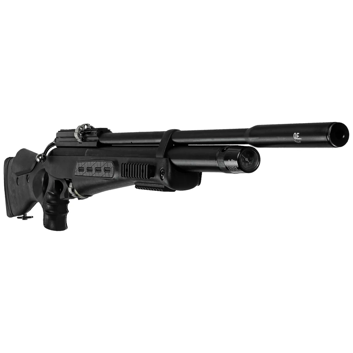 Wyposażenie dodatkowe - metalowe obrotowe bączki do mocowania zawieszenia. Nasadka / adapter (air cylinder discharging cap) do spuszczania ciśnienia z kartusza. Końcówka Quick-Fill umożliwiająca szybkie napełnianie kartusza powietrzem za pomocą pompki Hatsan Hand Pump, kompresora PCP, butli technicznej lub nurkowej (300 bar).